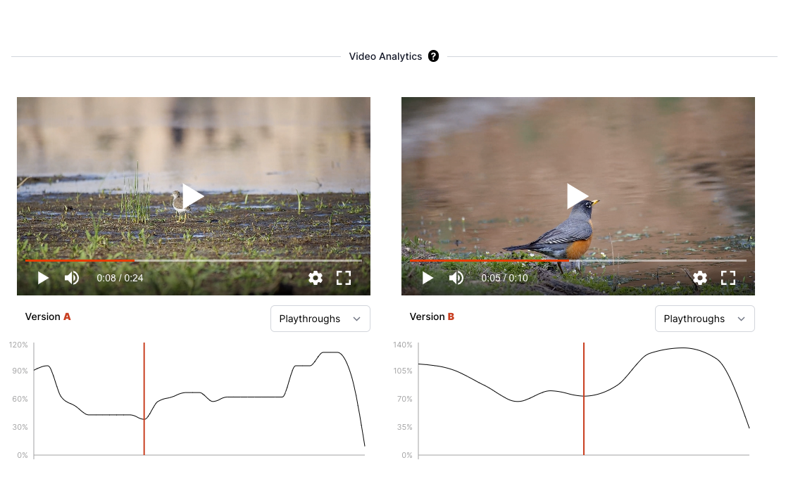 Compare retention rate, pinpoint scenes that lose viewer interest and identify when viewers fastforward and rewind. VideoLab tells you which version keeps viewers interested longer, with up to a 99.9% confidence level.